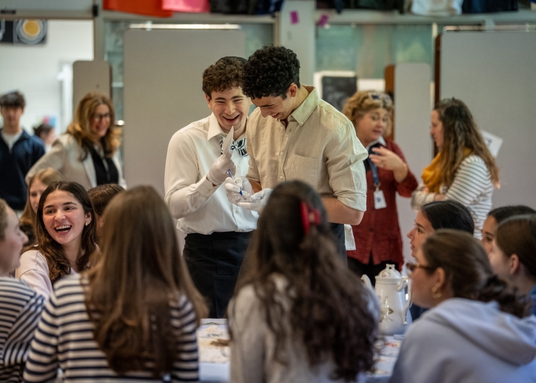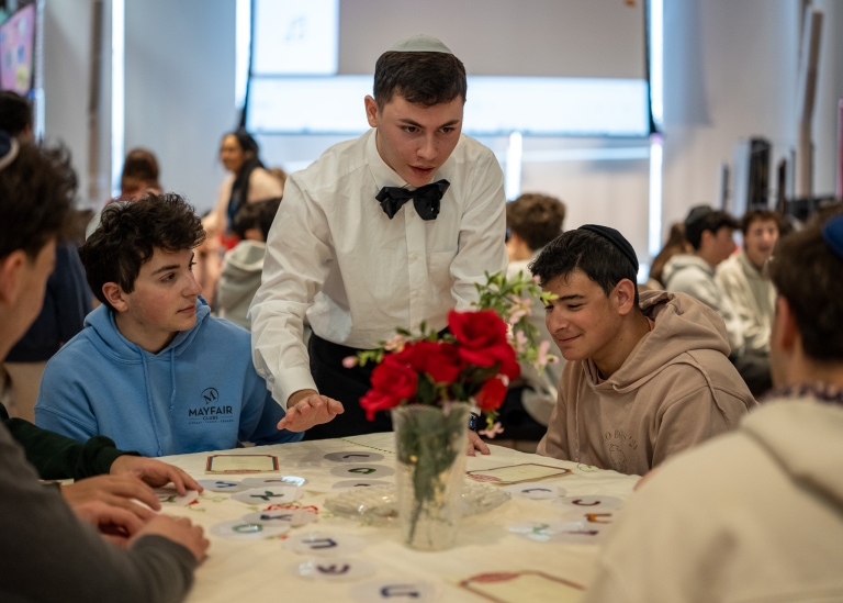 This week Tanenbaumchat celebrated Ivrit week with a variety of engaging and meaningful activities focused on the Hebrew language. On Tuesday, students participated in an Eliezer Ben-Yehuda–themed scavenger hunt, where they learned about his role in reviving the Hebrew language through interactive stations led by the Israel Council. On Thursday, the Hennick Family Atrium was transformed into “Café Eliezer,” a retro-style café inspired by the era of Eliezer Ben-Yehuda. The space came alive with Hebrew music, student performances, and small Hebrew language activities at each table, all while students enjoyed גלידה (ice cream), a word famously coined by Ben-Yehuda himself. Scroll down for more fun photos.
